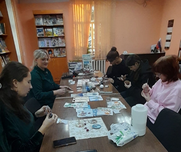 И мы рады сообщить, что сегодня в Партизанской межпоселенческой центральной библиотеке прошёл мастер-класс по Пушкинской карте! Под названием "Изящный декупаж" ребята смогли проявить свои творческие способности и создать неповторимые новогодние игрушки.